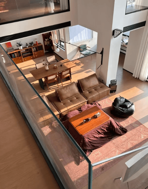通过堆叠悬浮楼梯,可步行到二楼,二楼也有一间大卧室,配备有衣帽间、洗手间多米尼加-西班牙。除此之外,设置在二楼的音乐室和宠物房、健身房也得到了网友们的青睐。从楼梯往下看,阳光打在客厅沙发上,整个房间具有很好的采光性。