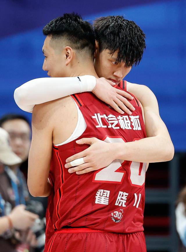 3月5日,北京北汽队球员曾凡博在比赛后与队友翟晓川(前)拥抱皇冠客服。新华社记者 王丽莉 摄